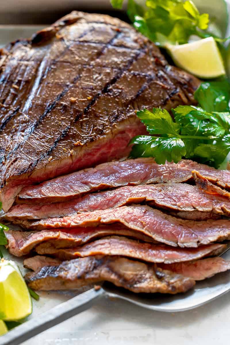 This Mexican Carne Asada recipe is a copycat of the popular restaurant, Chipotle Mexican Grill. This juicy flank steak is marinated in a flavorful marinade and perfectly grilled. Perfect for tacos, burrito bowls, or anything in between!