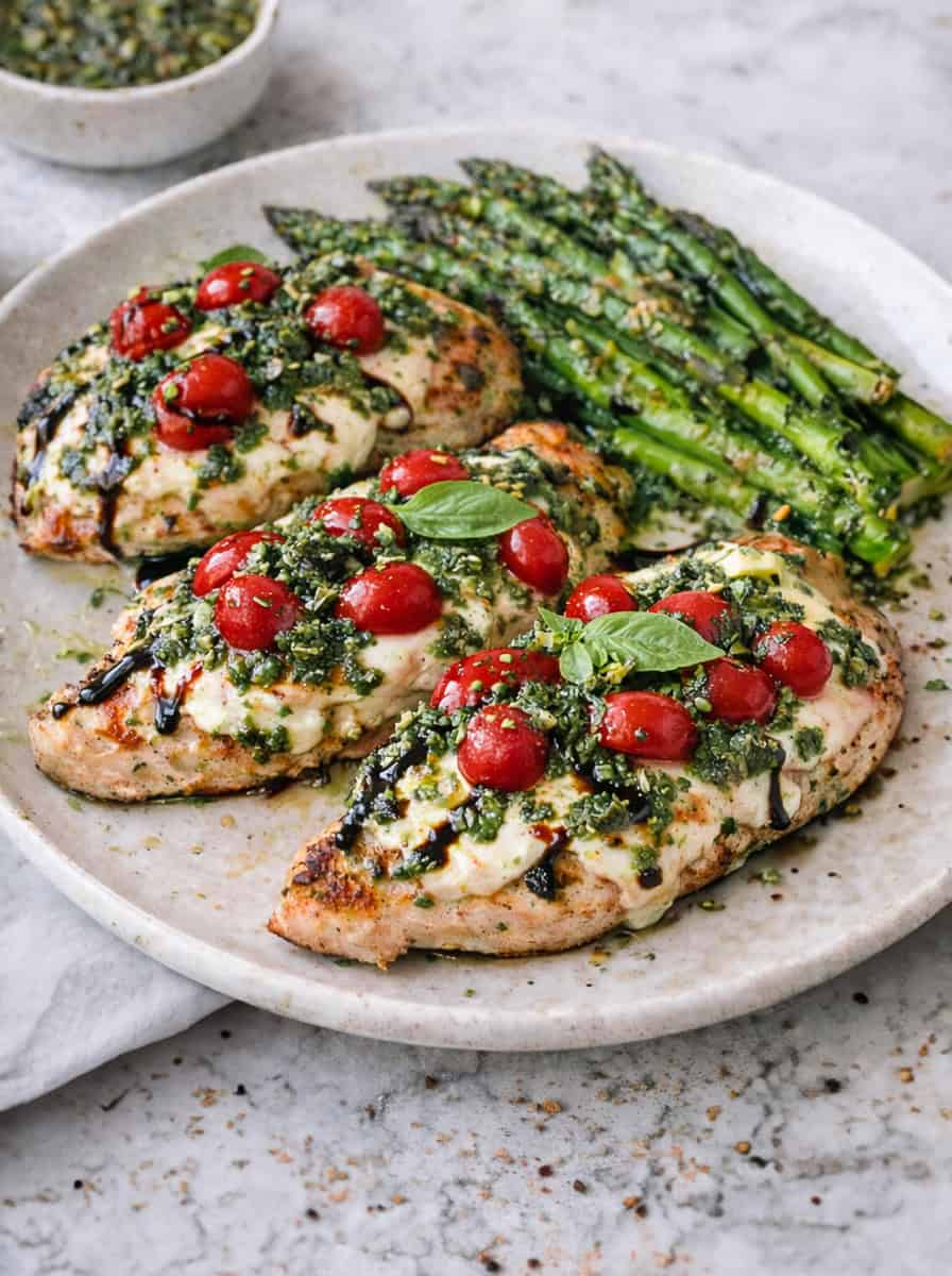 This Olive Garden Chicken Margherita Copycat is inspired by Olive Garden's grilled chicken, but made easily in a skillet. This copycat recipe features juicy chicken breasts, a silky lemon butter sauce, melted mozzarella, and bright basil pesto. It's a bright, fresh, restaurant-style chicken dinner you can make at home in under 30 minutes.